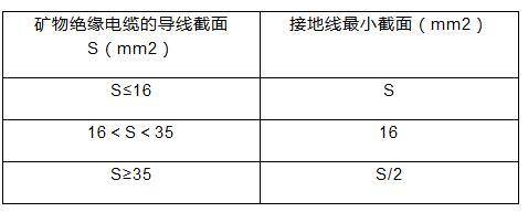 表1 礦物絕緣電纜選用接地截面表