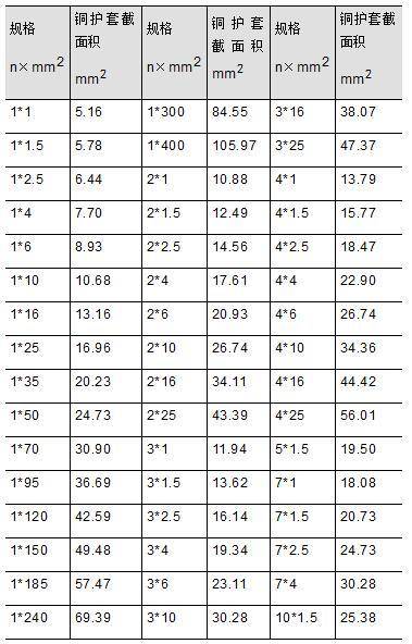 5.GB∕T 13033.1-2007/ IEC60702-1-2002 《額定電壓750V及以下礦物絕緣電纜及終端 第1部分:》的要求可以計(jì)算出礦物絕緣電纜銅護(hù)套的截面積如表2: