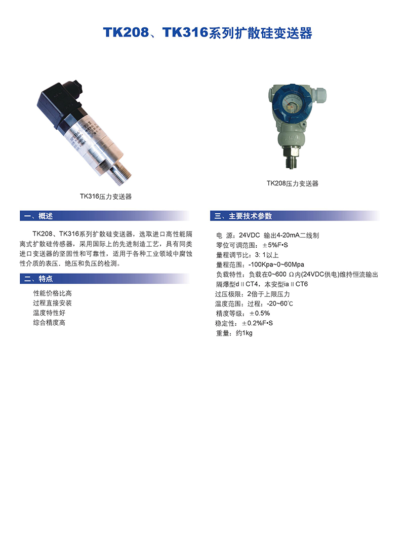 208/316系列擴(kuò)散硅變送器