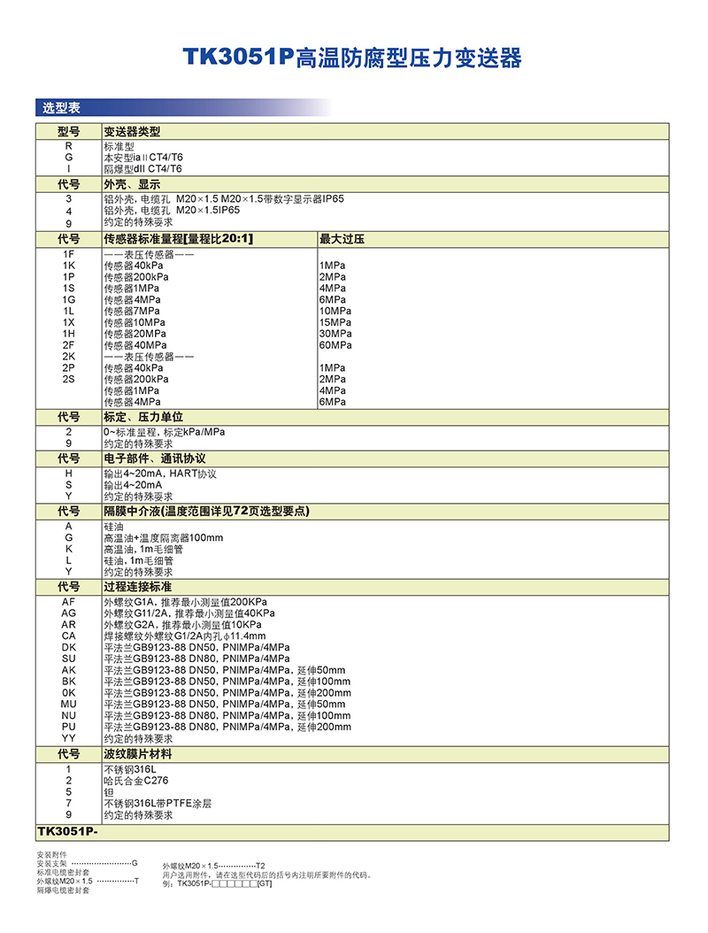 3051P高溫房腐型壓力變送器