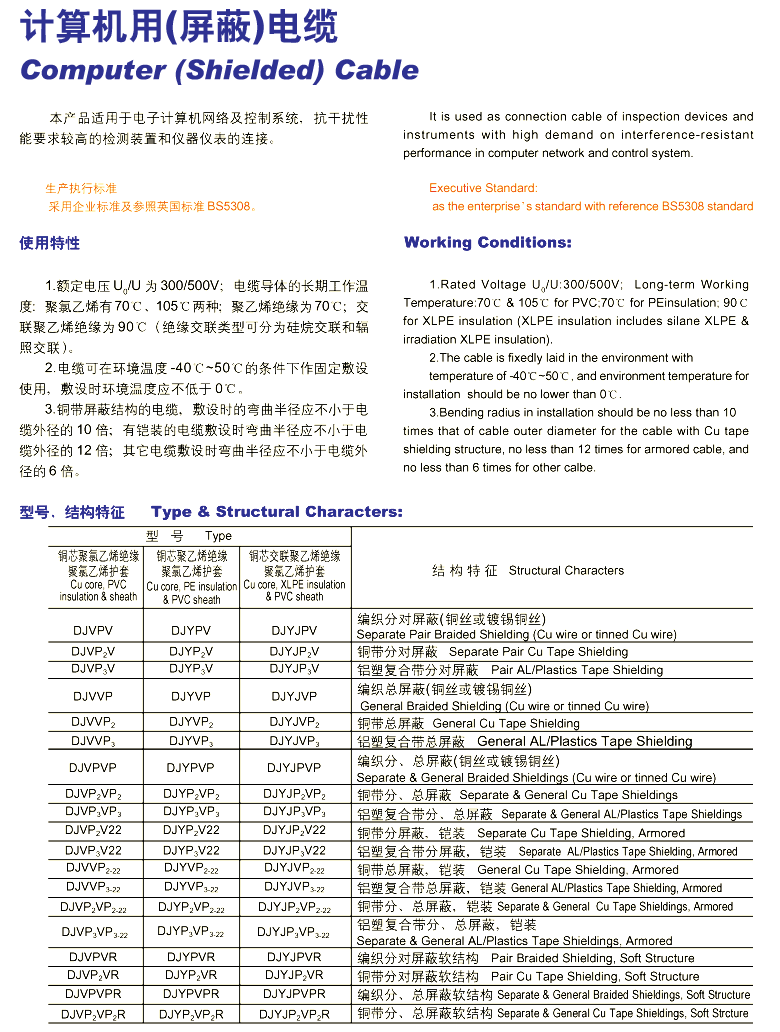 DJYP2V阻燃計(jì)算機(jī)電纜