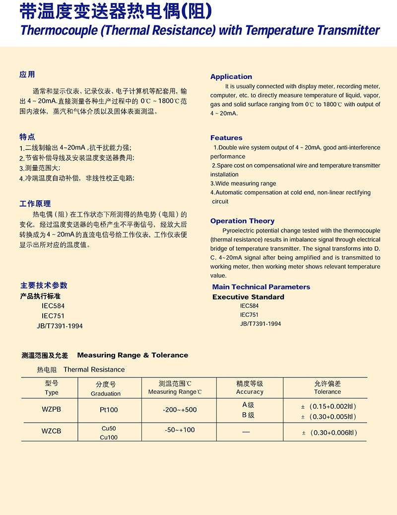 帶溫度變送器熱電偶(阻)