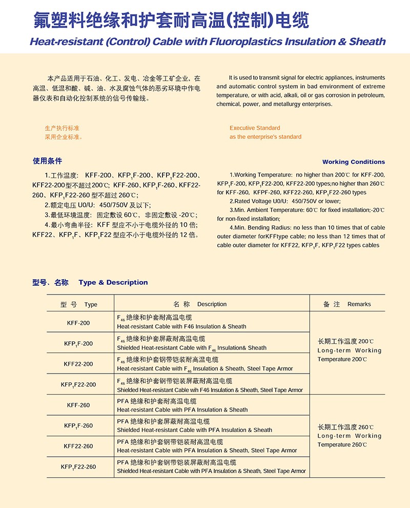 氟塑料絕緣和護(hù)套耐高溫(控制)電纜