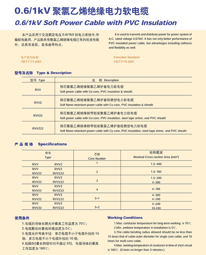 0.6/1KV聚氯乙烯絕緣電力軟電纜